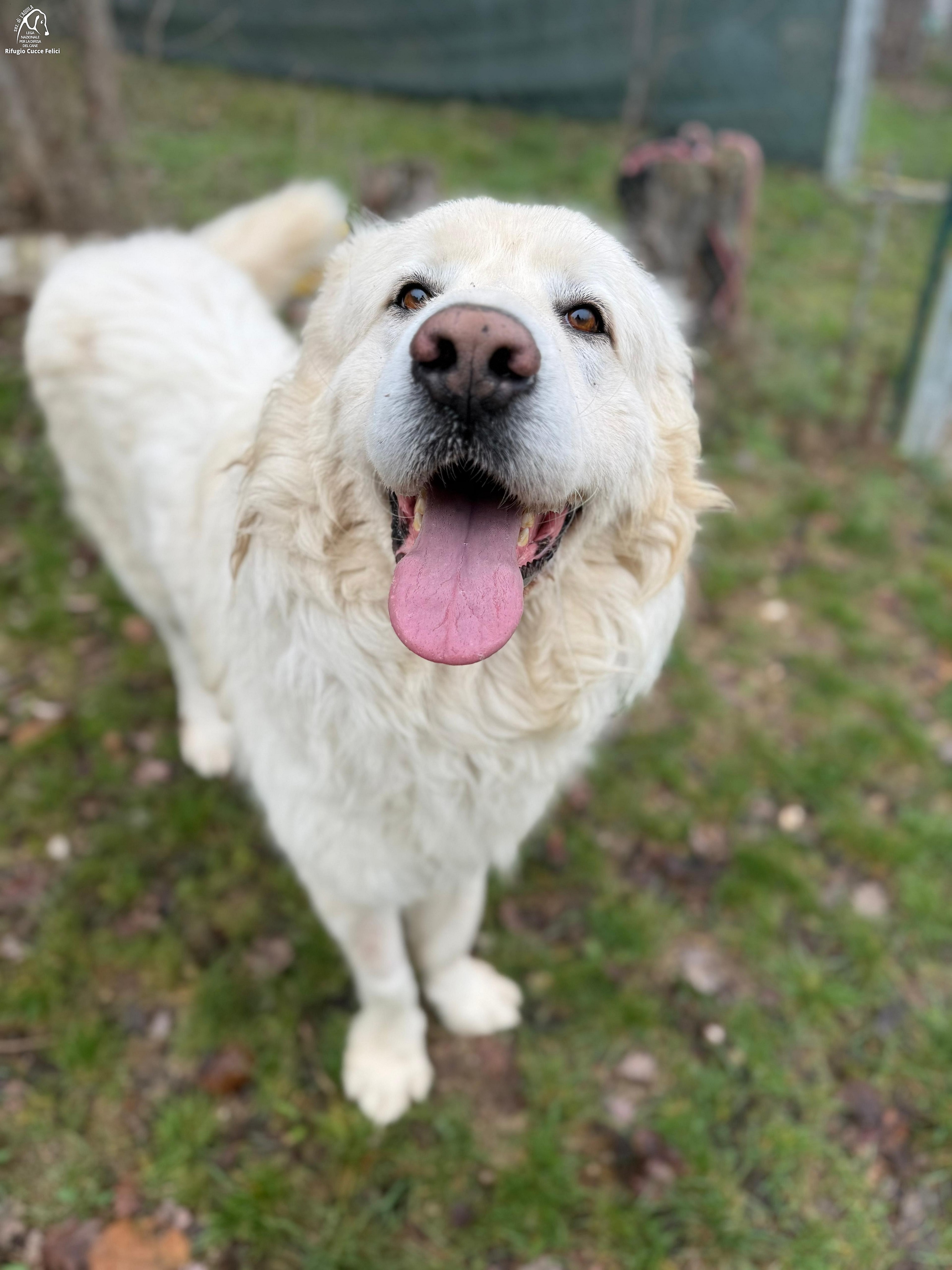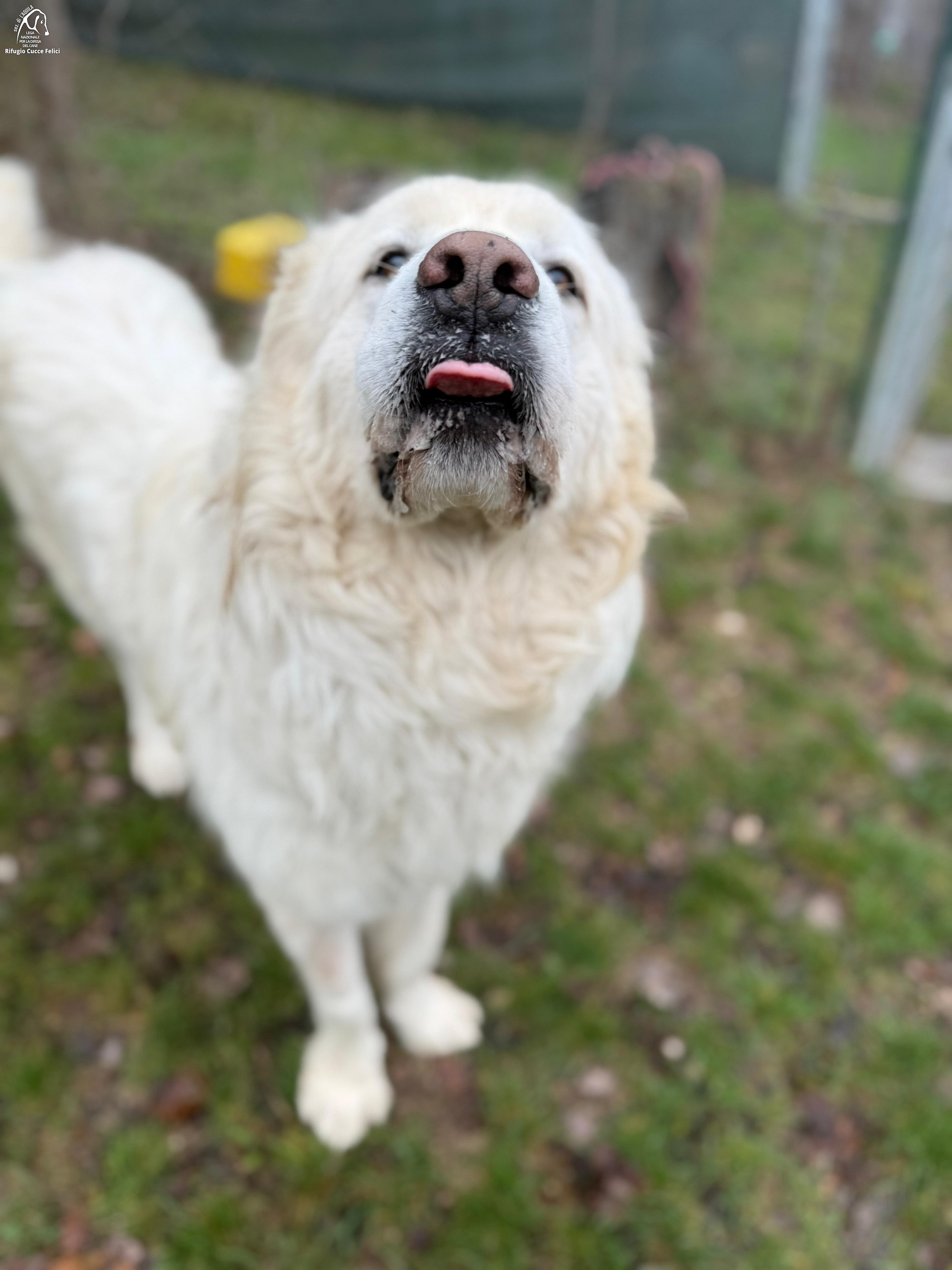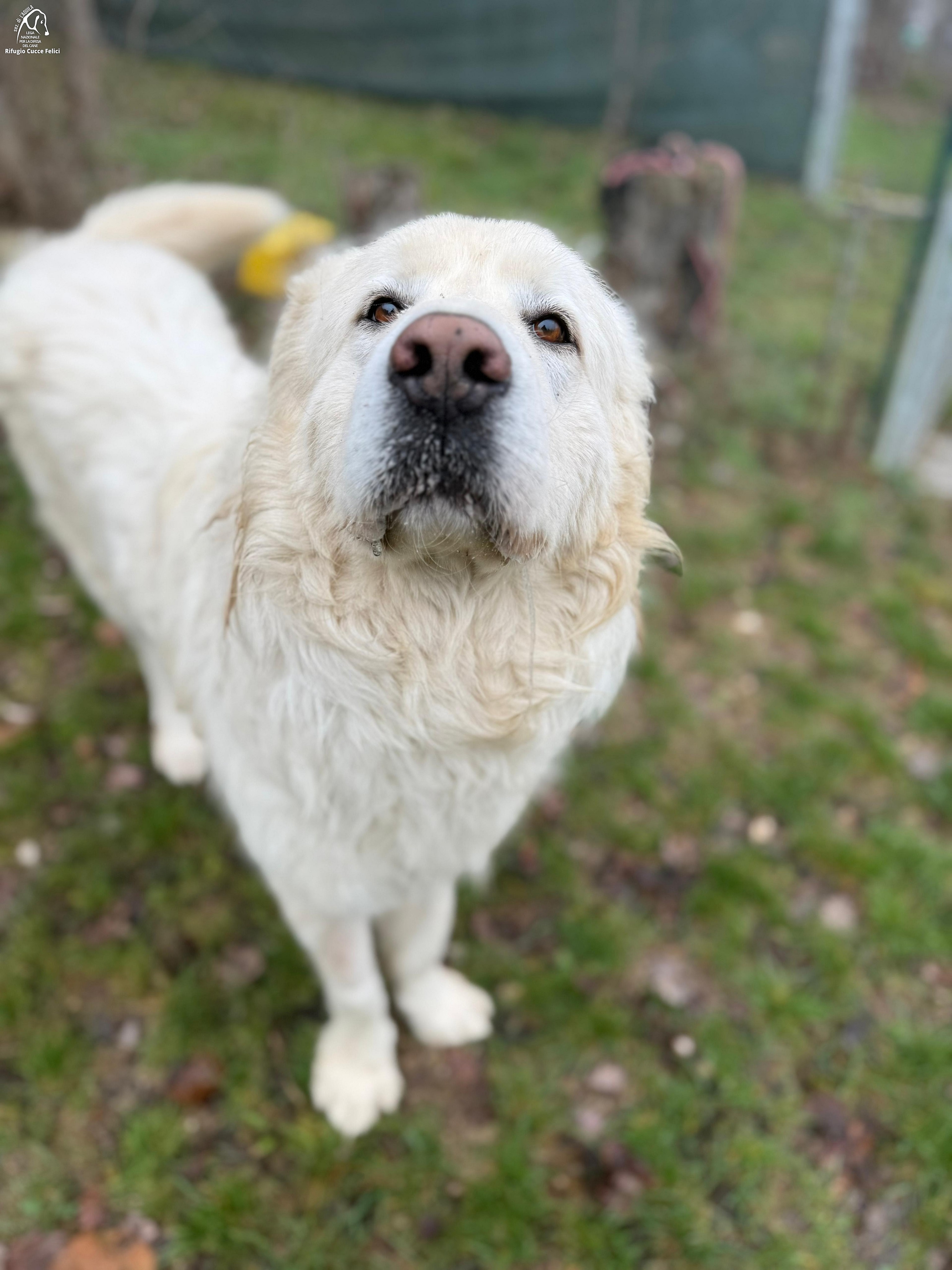 Icaro è un pastore abruzzese di taglia grande nato nel 2023 ed entrato in Rifugio dopo essere stato recuperato vagante in una Frazione di L'Aquila.