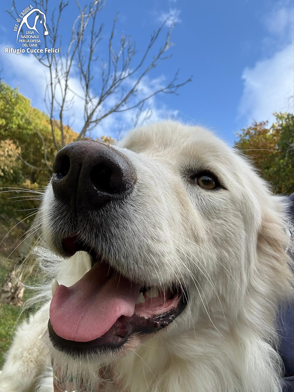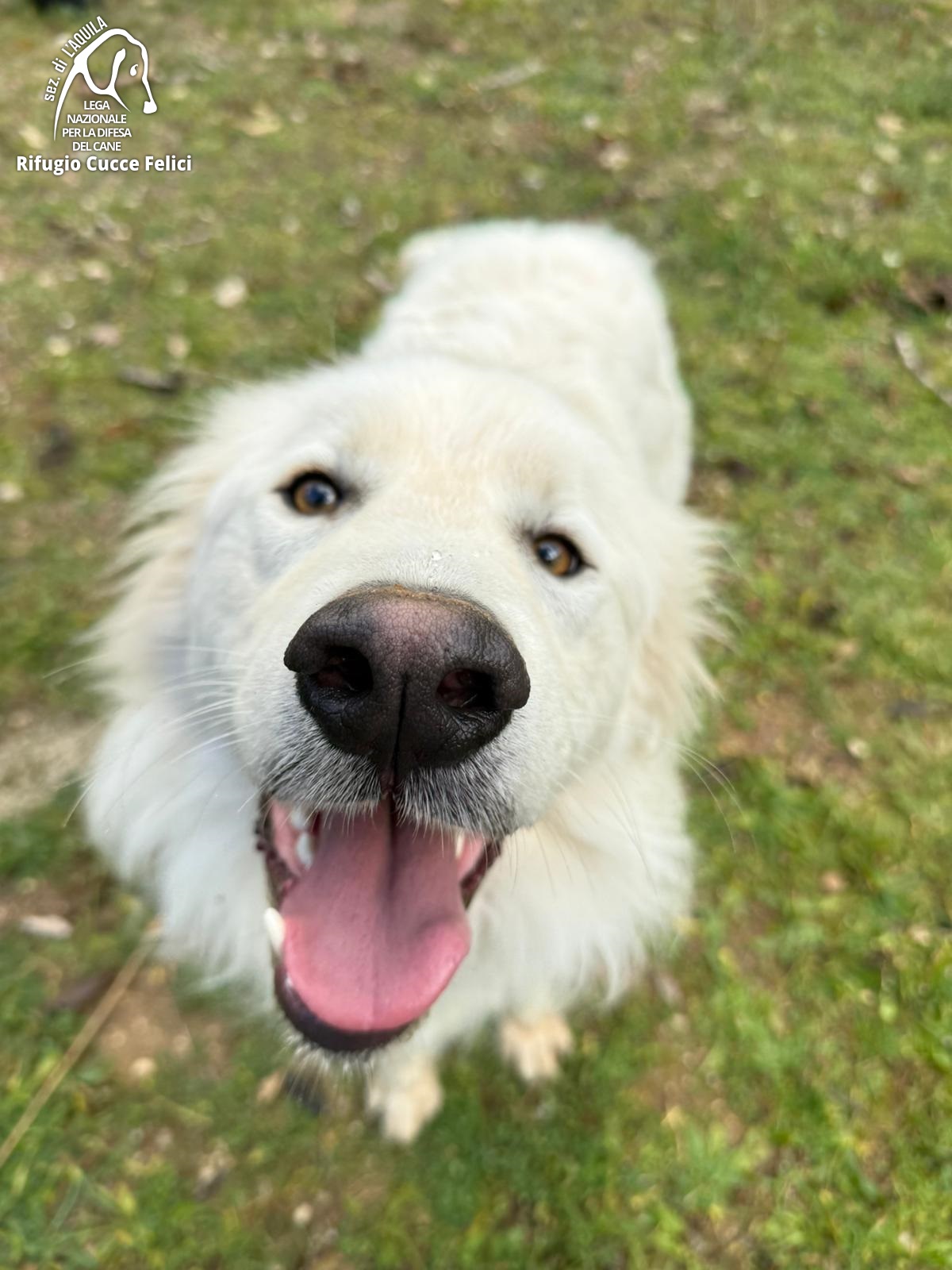 Moro è un pastore abruzzese maschio di taglia grande nato nel 2022 ed entrato in Rifugio dopo essere stato recuperato, vagante, in un quartiere di L'Aquila.